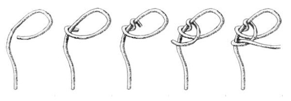 loop strand is thrown around both the post and loop strand one time and then