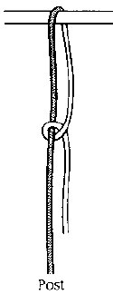 with a series of half hitches alternating direction of throws and utilizing post